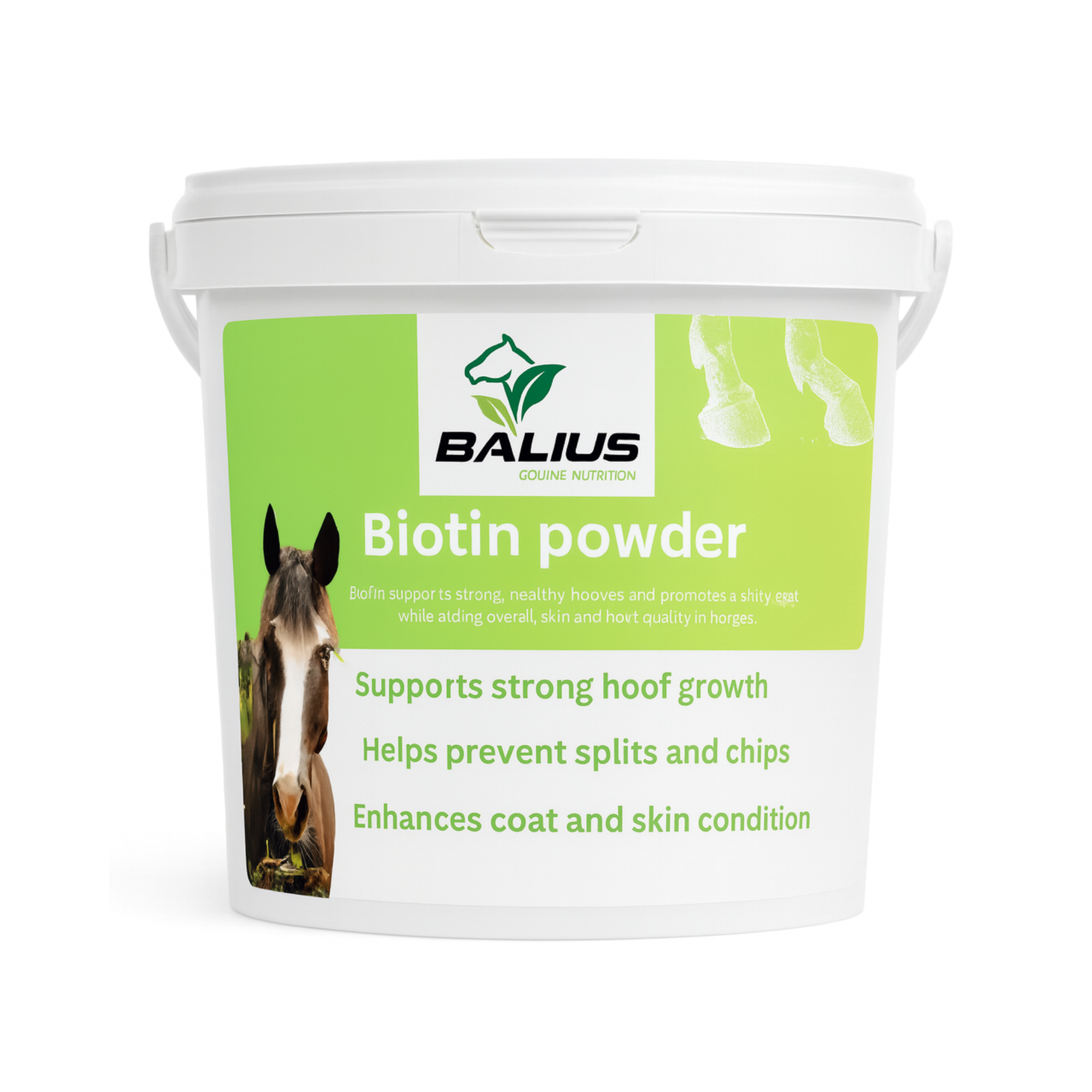 Biotin is an essential B-vitamin that supports strong, healthy hooves and a shiny coat in horses. It plays a vital role in keratin production, which strengthens hoof walls and encourages healthy growth. Regular supplementation helps reduce cracking, brittleness, and poor hoof quality, while also improving overall coat condition.
