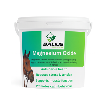 Balius Magnesium Oxide is a highly bioavailable and cost-effective source of magnesium, a vital mineral that plays a key role in nerve and muscle function, bone strength, and overall wellbeing. Many horses experience magnesium deficiency due to stress, intense training, or lush pastures high in calcium and potassium that interfere with magnesium absorption.